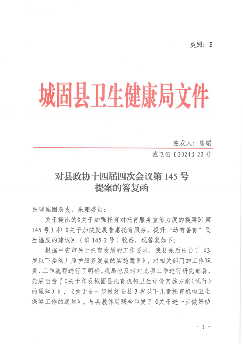 对县政协十四届四次会议第145号提案的答复
