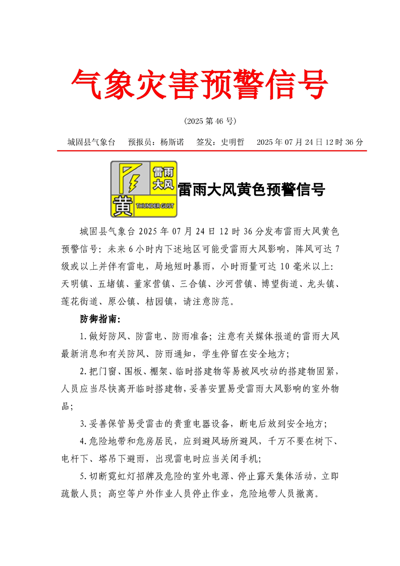 雷雨大风黄色预警信号
