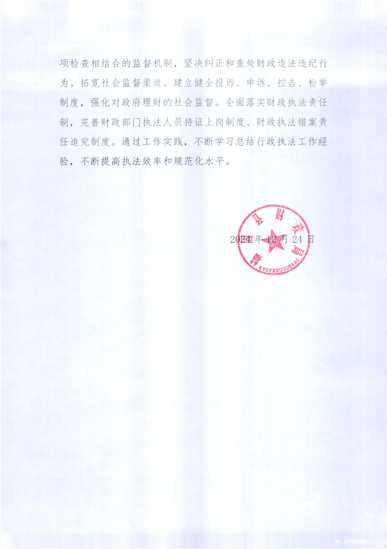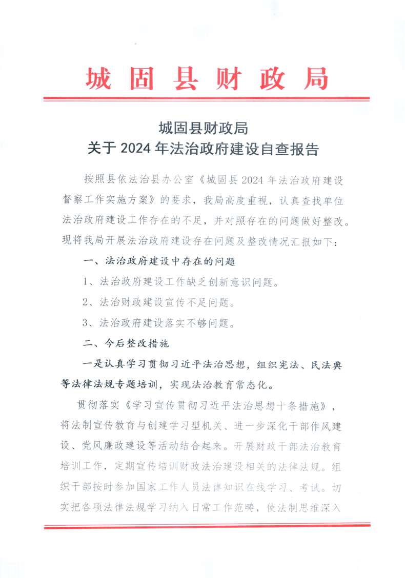 城固县财政局关于2024年法治政府建设自查报告