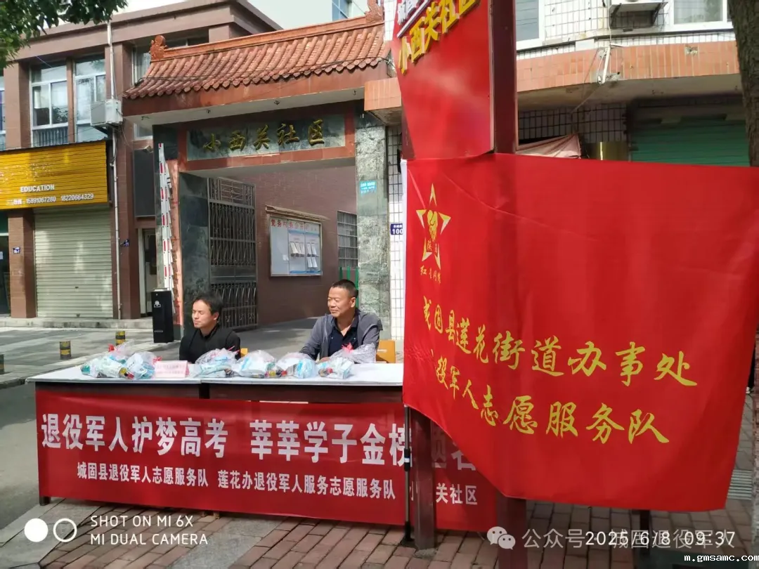 考场外,城固县退役军人事务局组织的退役军志愿服务队分别在城固一中考点、城固二中考点设立服务点。服务点提供公益补水、应急文具包、常规医疗包发放等服务,为高考学生加油助力。