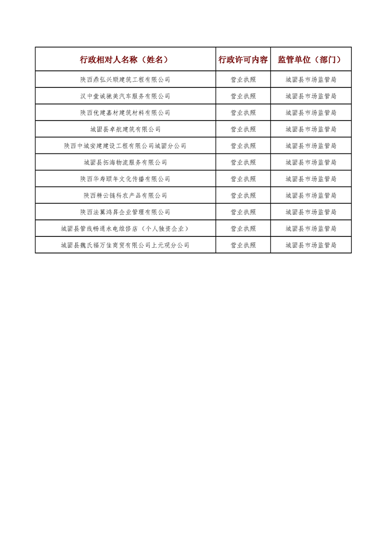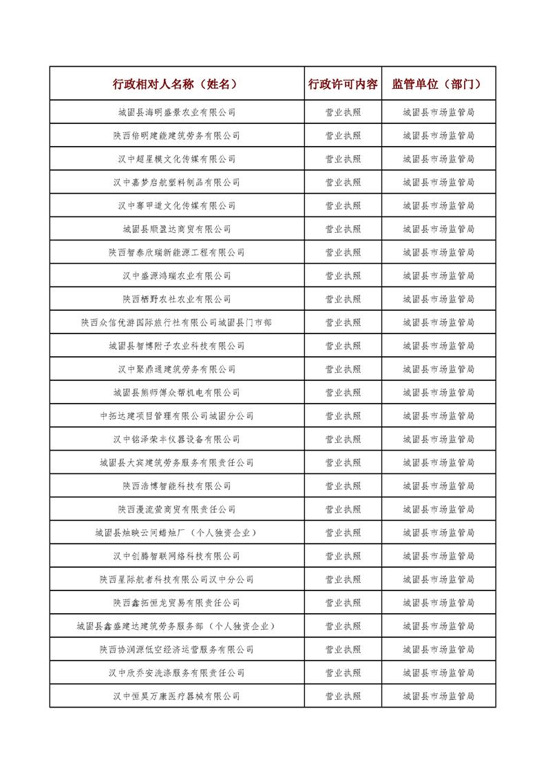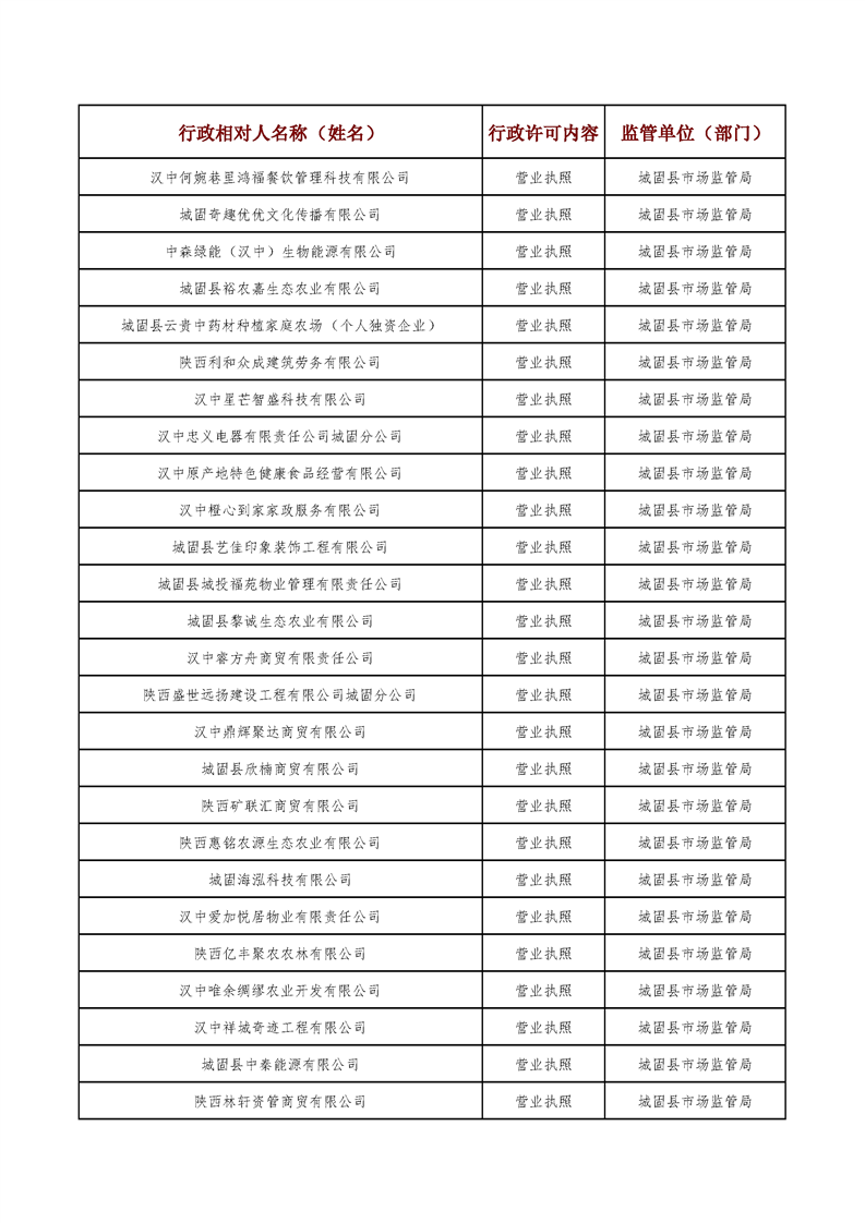 城固县行政审批服务局2025年5月行政许可结果公开