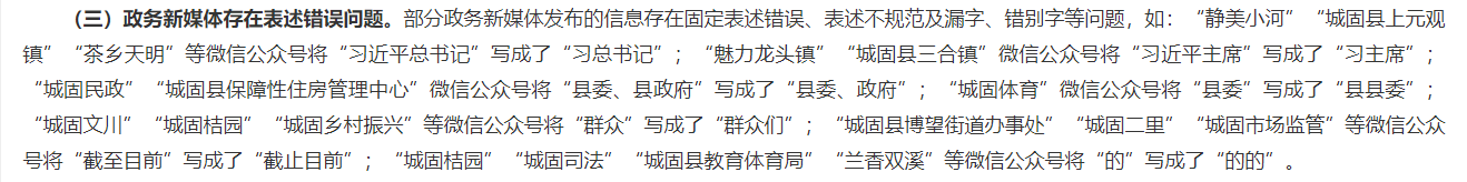 (一)第二季度复核情况:二季度通报存在问题单位15个,已完成整改13个,未按要求或时限完成整改2个,其中沙河营镇、上元观镇的部门镇办文件栏目未更新问题至今未整改。